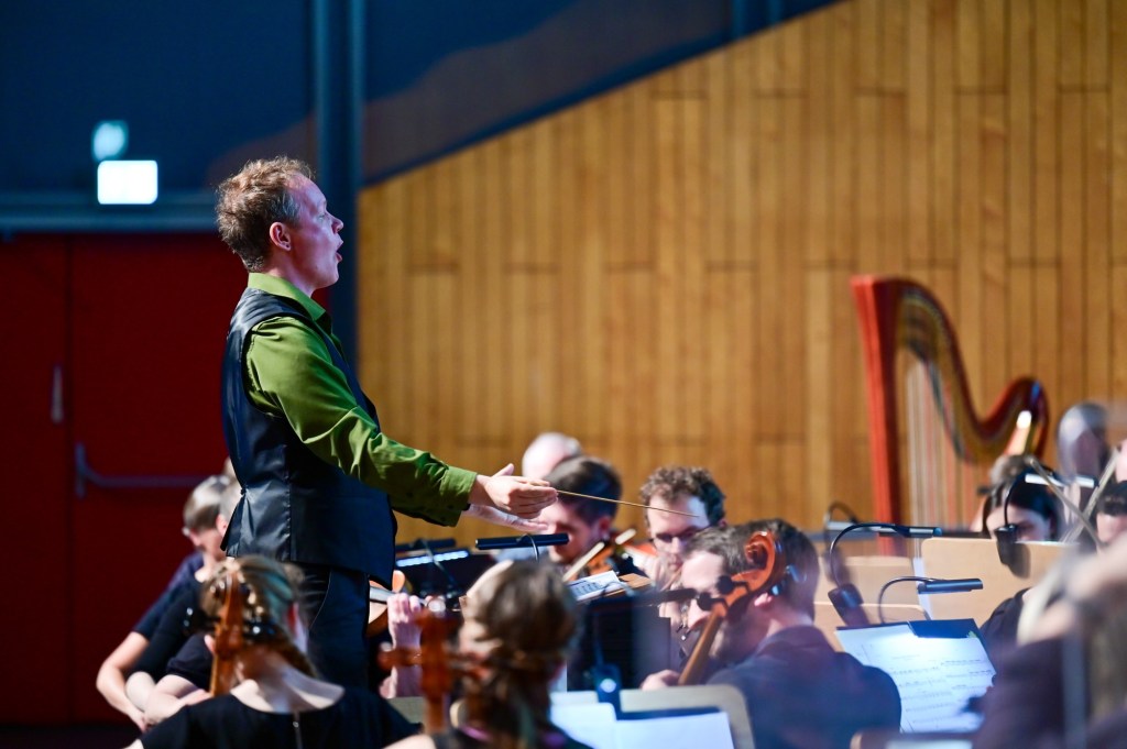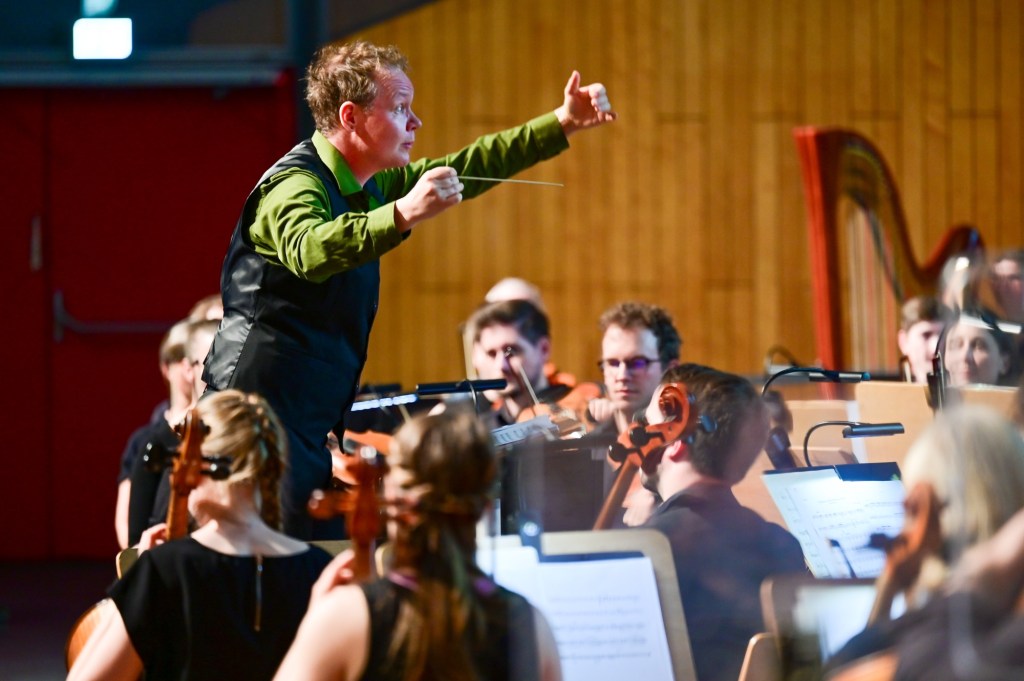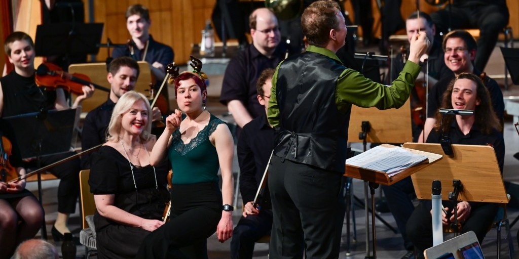 Markus Lüdke und ich sind zwei recht unterschiedliche Sorten Mensch und Dirigent, leiten auch zwei sehr unterschiedliche Ensembles, aber stimmen in unseren musikalischen Vorstellungen ziemlich überein und ergänzen uns daher ganz wunderbar. Gleichzeitig sind die Mitglieder beider Gruppen ganz unkompliziert bereit, sich einfach auf den jeweiligen anderen Dirigenten einzustellen, was für Amateurensembles nicht immer selbstverständlich ist. (Das Orchester hatte dieses Semester übrigens einen fantastischen Sound, das war ein echter Genuss! Ich nehme an, die viele Kammermusik, die sie seit einigen Jahren miteinander spielen, plus zusätzlich diesen Frühling Studioorchester sein für einen Dirigent*innenworkshop hat sie richtig klanglich zusammengeschweißt, wirklich sehr sehr schön.)